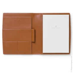 The case features insert options for notepads or books, with stitched-in pockets. A stitched-in loop of the same soft leather provides a place to stow your pen. Comes fully equipped with a replaceable notepad. Handmade in Germany.