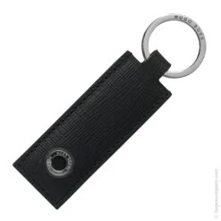 - This classic key ring is crafted in a fine textured leather with an understated metallic finish. The color palette of black, dark blue and grey as well in combination with the stainless steel ring are classically modern making this item perfect for any writing instrument collection.