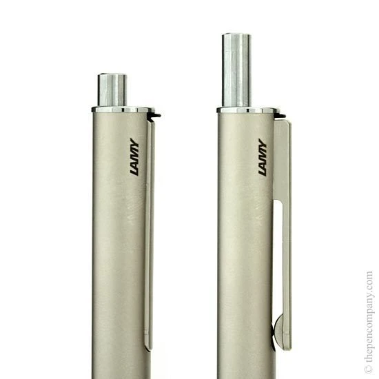 The Lamy Swift is a propelling rollerball pen. As the point of the Swift is extended a clever mechanism retracts the clip so it is flush with the barrel. The clip pops back out when the point is retracted. This mechanism stops the clip from inhibiting movement when writing and minimises the chance of putting the Swift in a pocket with the point out.