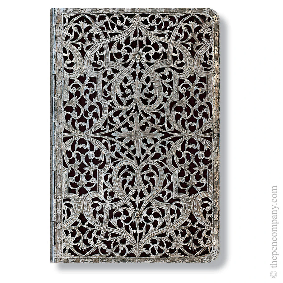 The word “filigree” derives from the Latin words filum (thread) and granum (seed). You can see how the name originated when taking in the delicate and intricate repetition of these wonderful address books.