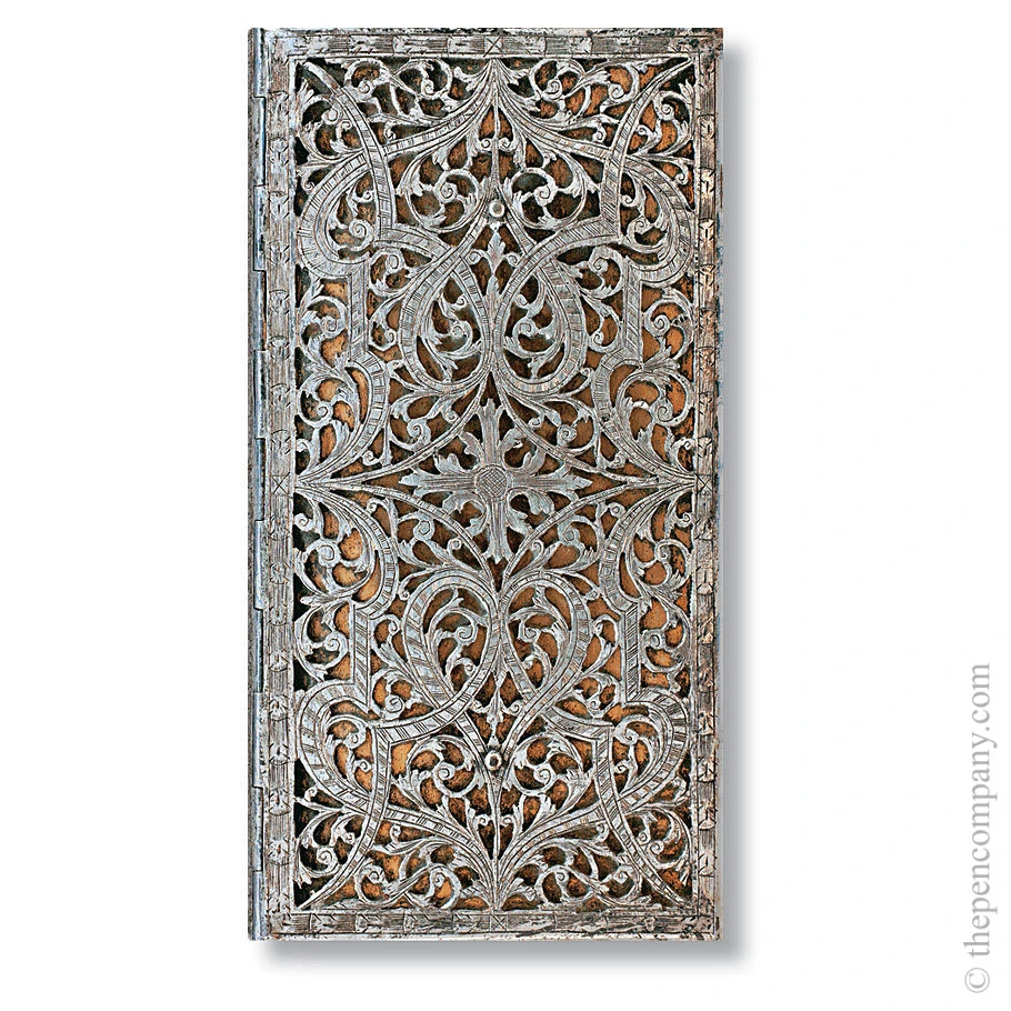 The word “filigree” derives from the Latin words filum (thread) and granum (seed). You can see how the name originated when taking in the delicate and intricate repetition of these wonderful address books.